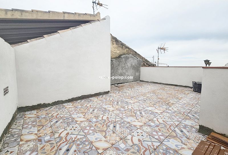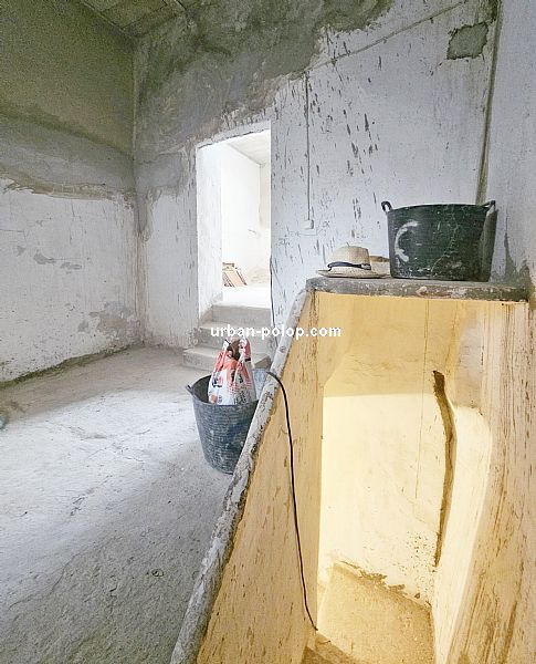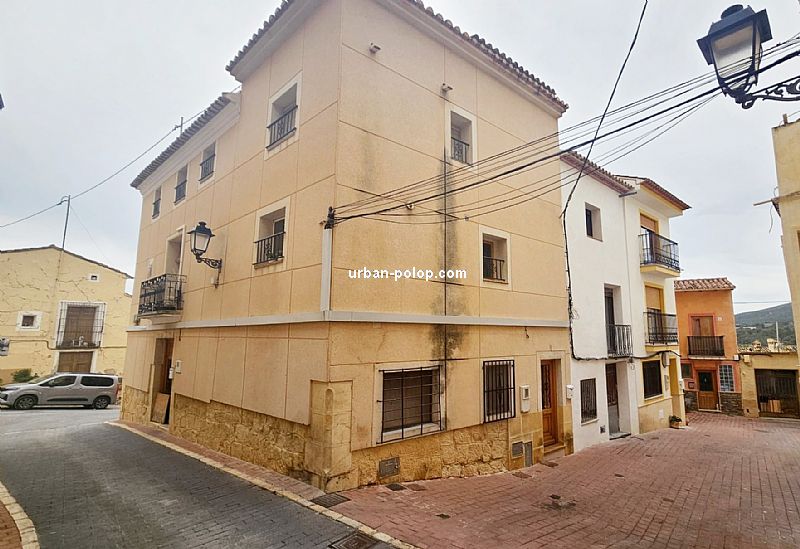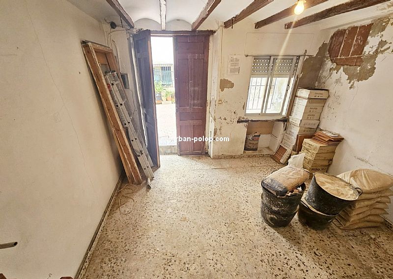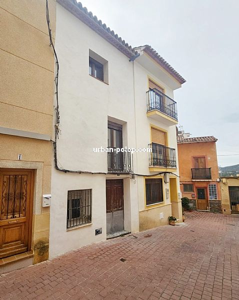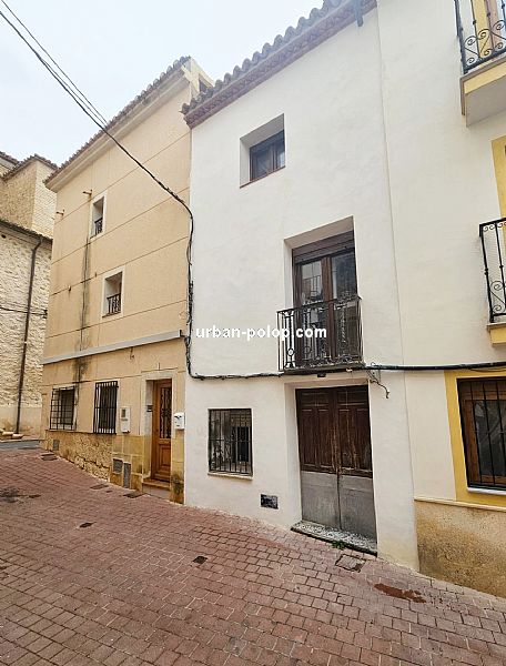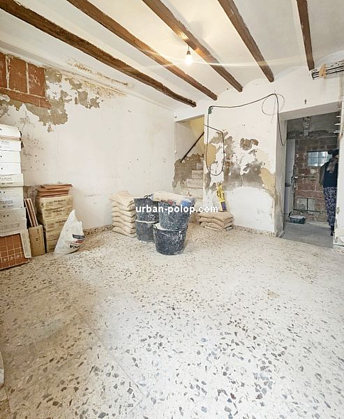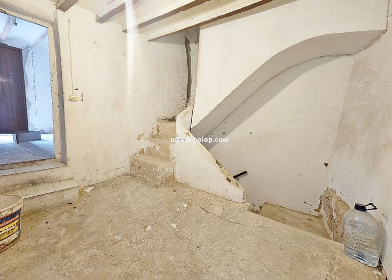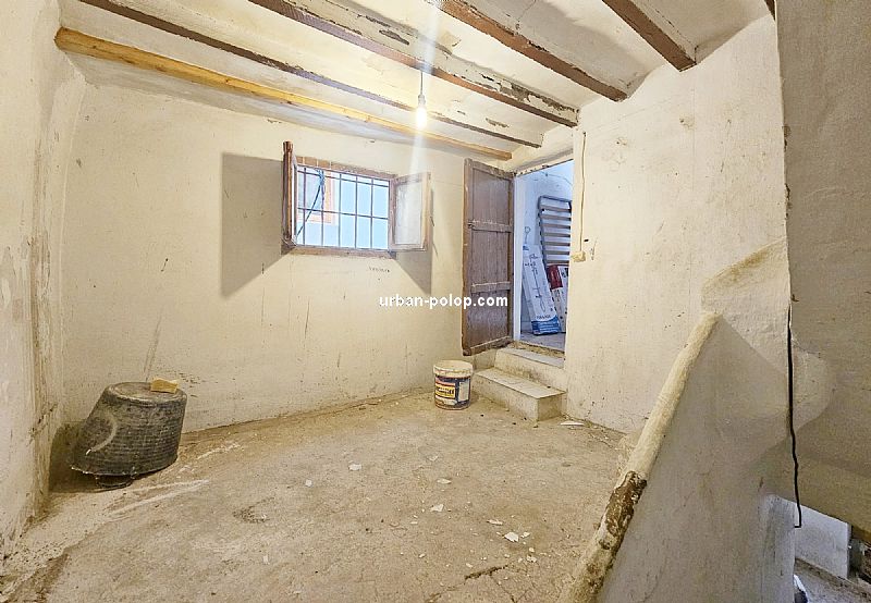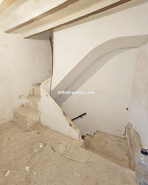 Casa en 3 alturas, con planta de 27 m2 y terraza de 20 m2 con vitas a Sierra Aitana, para terminar de reformar (fachada, cubierta, ventanales ya renovados), estructuralmente sólida y posiblilidad de algún baño más, con suministros de luz y agua operativos y mucho carácter, en el pueblo histórico de Polop, en calle sin salida, tranquila y excelente vecindario.